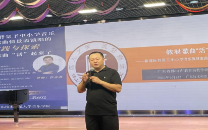 2023年6月8日下午,beat365唯一官方网站邀请到佛山市教育局音乐教研员曾春燕老师为我院师生开展《音乐教材歌曲“活”起来了——新课标背景下中小学音乐教材歌曲情景表演唱的实践与探索》专题讲座。学院青年教师和20级师范生参加,讲座由beat365唯一官方网站邓昆副院长主持。