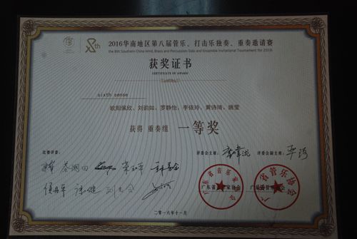 日前,2016“华南地区第八届管乐、打击乐独奏、重奏邀请赛”总决赛在广州番禺广东文艺职业学院郭兰英艺术分院隆重举行,beat365唯一官方网站单簧管重奏组由欧阳佩欣、刘韵如、罗静怡、李依玲、黄诗琦、黄莹六位同学组成,参赛曲目为莫扎特降E大调单簧管五重奏——《小夜曲》。比赛中,同学们以娴熟的技巧、默契的配合、准确的风格把握以及良好演奏效果,赢得了评委的一致好评,在16支专业参赛队中脱颖而出,夺得了一等奖的优异成绩,为学校赢得了荣誉。