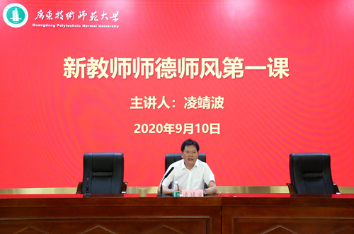 结合当前高校师德师风建设现状,凌靖波分析了学校师德师风存在的突出问题。针对这些现状,凌靖波对新教师提了几点希望:一是坚持思想铸魂,做学生健康成长的引路人;二是讲好广师大故事,做广师大精神传承者;三是勇攀科学高峰,做中国特色、世界水平技术师范大学的奋斗者;四是锤炼高尚师德,做学生立志成才的“筑梦人”。希望大家要以习近平新时代中国特色社会主义思想为指引,牢记“为党育人、为国育才”的初心和使命,在推动中国特色、世界水平技术师范大学建设的实践中增长才干、建功立业。