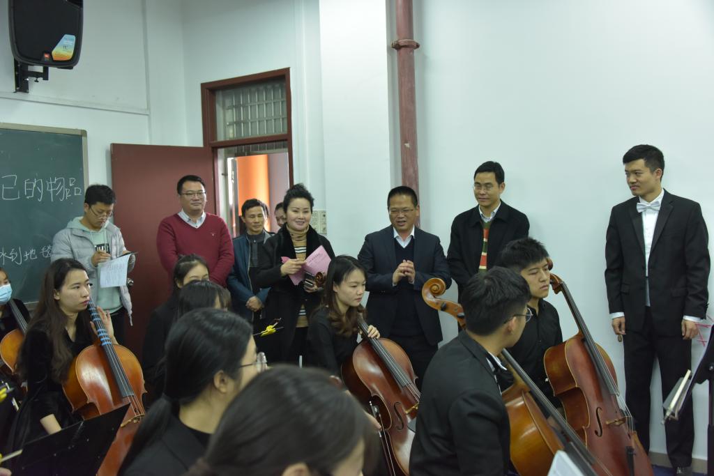 12月22日下午,学校党委副书记李向明在校办公室、校团委负责人的陪同下,到第二教学楼beat365唯一官方网站音乐厅审查“2021年新年音乐会”节目,beat365唯一官方网站党政负责人及160多名参演师生参加了汇报。