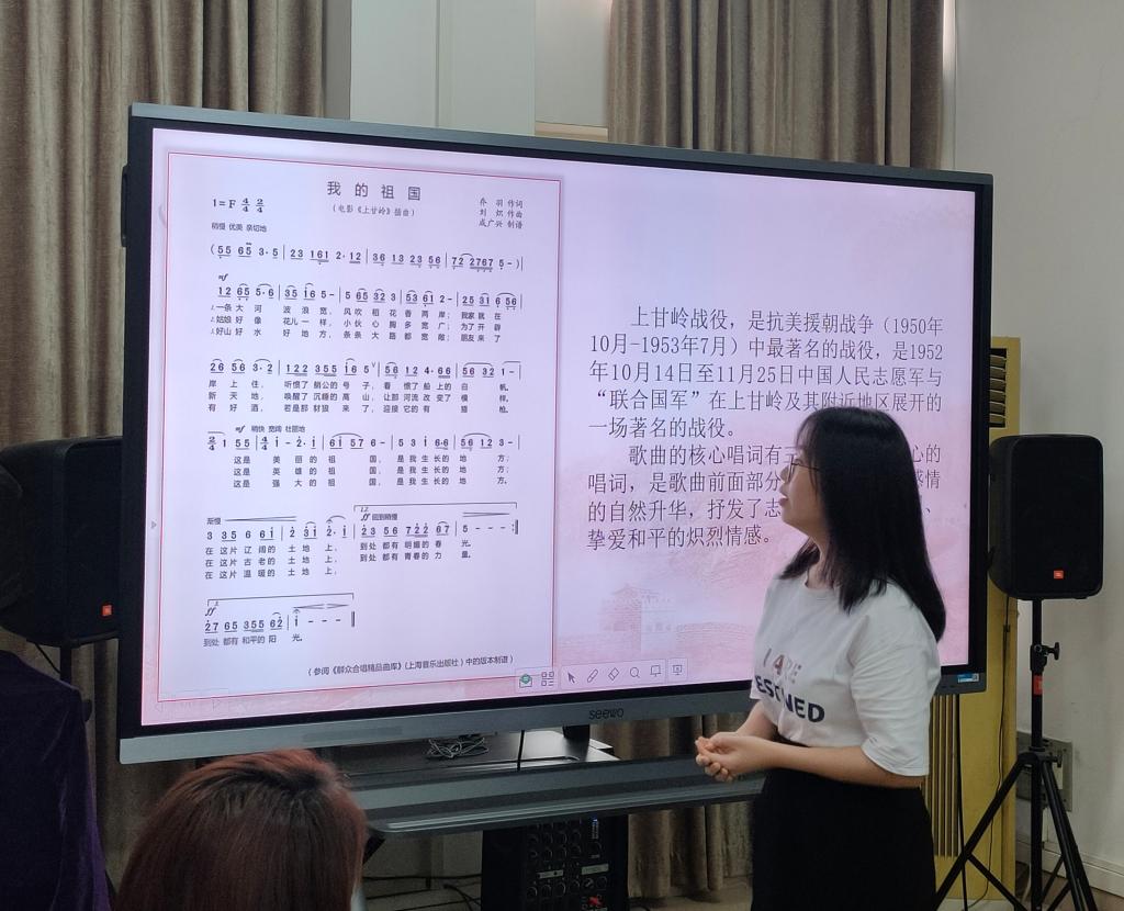 此次微党课活动深受学生党员的喜爱和支持,支部中有近40名党员同志报名参加,经过前期的甄选,共选出10份优秀微党课作品在会上进行讲授。这些优秀作品结合了beat365唯一官方网站的专业特色,选取红色题材的歌曲、舞蹈、歌剧等文艺作品,以小见大,见微知著,讲述建党百年的发展历程。林佳婉同学深情讲述了《雷锋日记》中的《唱支山歌给党听》的创作背景,万紫婷同学分析了央视大型音乐舞蹈史诗《奋斗吧 中华儿女》的精神内涵,付钰同学以歌剧《永不消逝的电波》为载体,重温了地下工作者李白同志为党为民舍生入死的感人瞬间。最后,支部党员们还一同观看了红色电影片段,齐唱经典革命歌曲《没有共产党就没有新中国》。