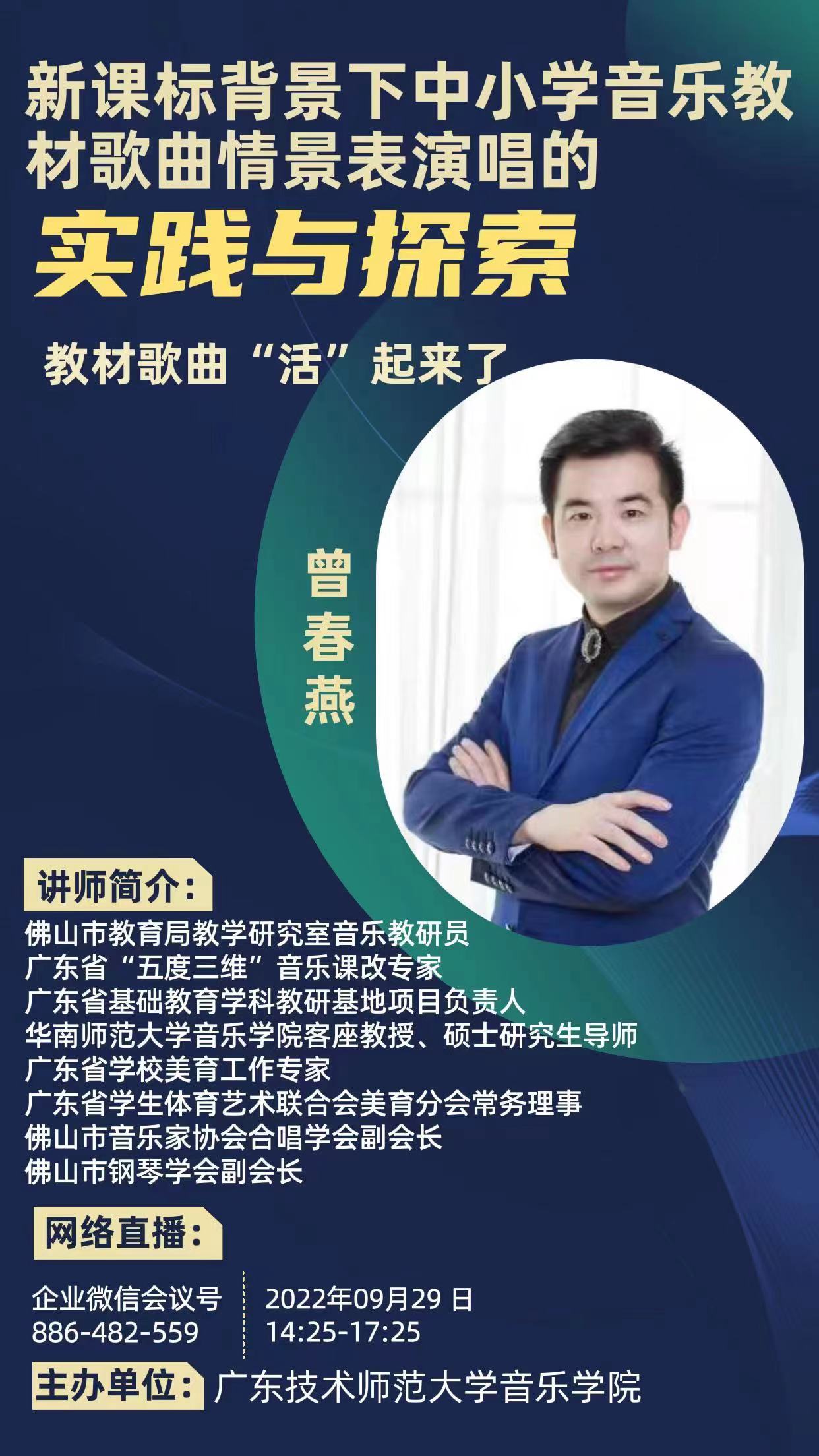 2022年9月29日下午,佛山市教育局音乐教研员曾春燕受邀为beat365唯一官方网站师生开展关于“教材歌曲‘活’起来了——新课标背景下中小学音乐教材歌曲情景表演的实践与探索”的专题讲座,旨在分享音乐教育改革探索中的成果与经验。beat365唯一官方网站邓昆副院长、邓兰副教授及19级300多名本科生参加讲座。讲座由邓昆副院长主持。