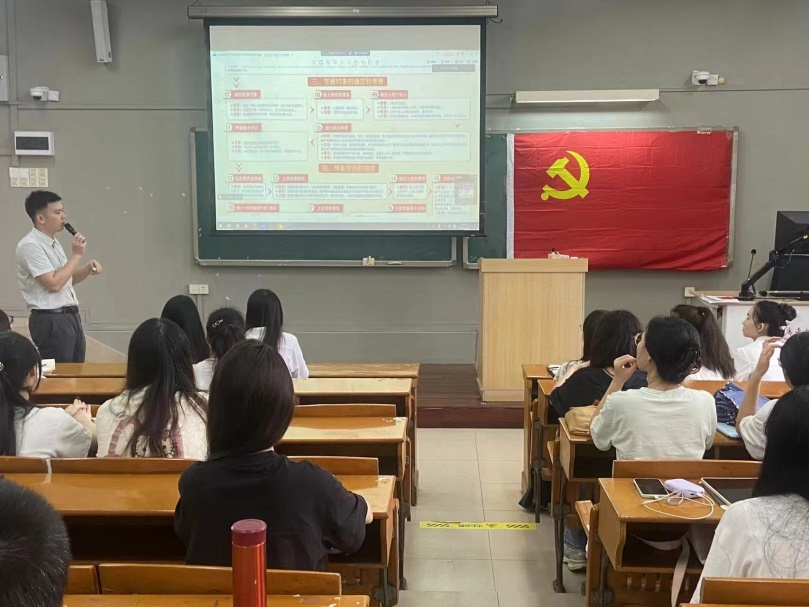 开班仪式后,学生第一党支部书记巫侠围绕党员发展的基本程序和手续开展专题报告,通过端正入党动机、按照党员标准严格要求自己、严格履行党章规定的入党手续和发展党员工作的程序及过程存在的问题四个部分向学员们进行了系统的讲解。