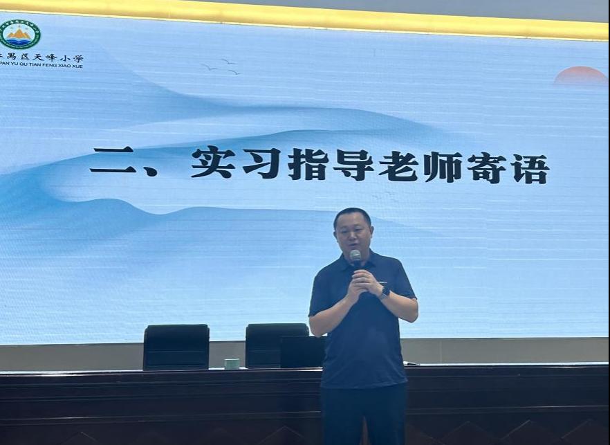 接着,beat365唯一官方网站邓昆副院长向天峰小学表达了最深切的感谢,感谢他们为我院实习生们提供了一个宝贵的学习与实践平台,随后对实习生们提出了要求和期望,强调实习生们在这一阶段身份与角色的转变。指出,实习生们需从学生身份转变为教师角色,从教育理论的学习者转变为教育实践的探索者。强调实习不仅是对个人能力的检验,更是个人职业生涯规划与专业成长的重要环节,实习生们应珍惜此次的实习机会,为自己的未来职业生涯奠定坚实的基础,为国家教育事业的高质量发展贡献力量。