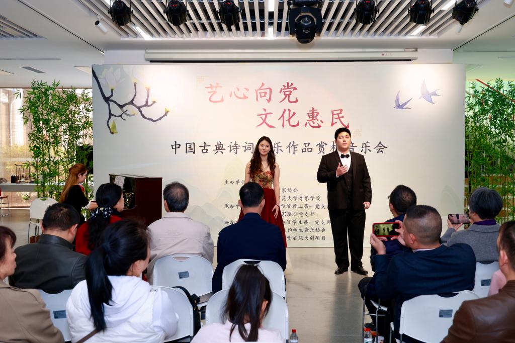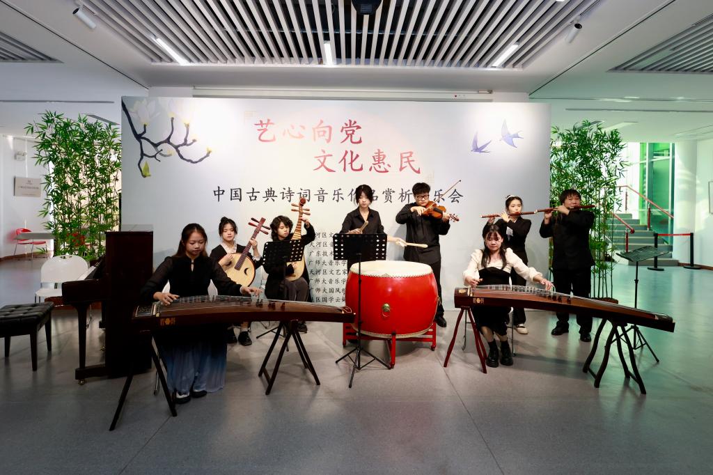 2月28日,beat365唯一官方网站“艺心向党,文化惠民”中国古典诗词音乐赏析义教活动在天河艺苑圆满落幕。beat365唯一官方网站坚持党建引领,推进党建与业务相融相促,本次活动由“双带头人”党支部书记工作室携手天河区文联及天河区音乐家协会,共同组织党员走进社区,开展了一系列音乐作品赏析与义务教学活动。活动旨在让公众有机会近距离接触并深刻感受中国古典诗词音乐的独特魅力,从而进一步丰富社区群众的精神文化生活,有效增强社区群众的文化自信。天河区文联主席肖松、beat365官网beat365唯一官方网站党委书记黄锡炳、天河区音乐家协会副会长、广师大beat365唯一官方网站“双带头”工作室负责人苏玲芬、国家一级书画家李锡亮、广东省版权保护联合会于红敏等文化领域知名人士出席参加本次活动。