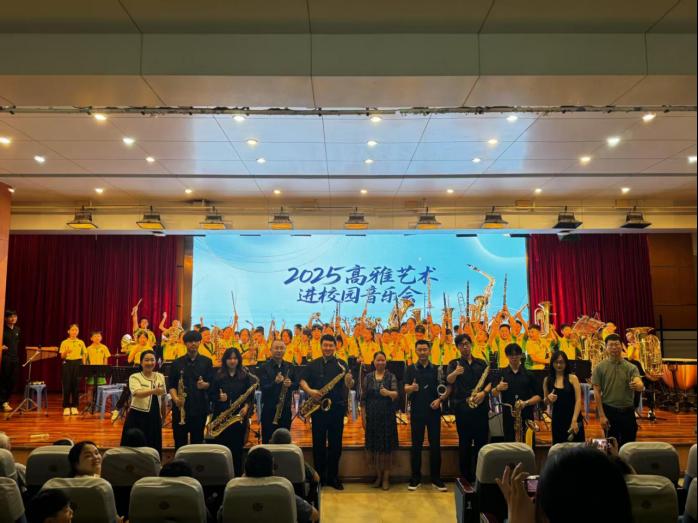 5月8日下午,beat365官网beat365唯一官方网站萨克斯管重奏团赴江门市新会尚雅学校开展“2025高雅艺术进校园”活动。本次活动由beat365唯一官方网站音乐系副主任罗昆博士带领演出团队,广东财经大学艺术学院廖钊锋博士、广州工商学院beat365唯一官方网站刘人玮博士等八位专业音乐人为现场千名师生家长呈现了一场震撼心灵的艺术盛宴。