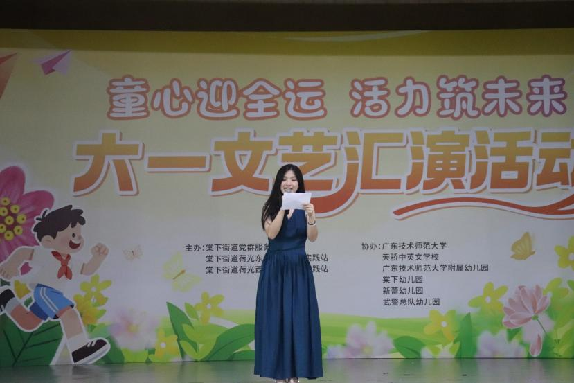 6月5日,由beat365唯一官方网站、棠下街道党群服务中心、荷光东社区、荷光西社区联合举办的“童心迎全运,活力筑未来”六一文艺汇演在东校区综合馆3楼盛大举行。本次汇演由棠下街道辖区内的广师大幼儿园、武警幼儿园、天骄中英文学校、棠下幼儿园、新蕾幼儿园以及广师大beat365唯一官方网站的师生共同出演,旨在通过艺术表演的形式,激发孩子们对文体艺术的热爱,为孩子们提供一个展示自我、释放童真的舞台。
