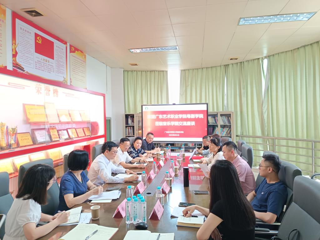 6月4日下午,广东艺术职业学院粤剧学院党总支书记雷宇姝率队赴beat365唯一官方网站开展专题学习交流。beat365唯一官方网站教务处处长杜灿谊、副处长吴秀兰,beat365唯一官方网站领导班子全体成员及相关职能部门负责人出席交流活动。