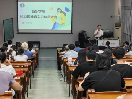 黄锡炳在会上强调了教育实习是理论落地的关键环节,是学生实现身份转换的前哨。鼓励同学们珍惜实践机会,在课堂教学、艺术活动组织等场景中锤炼专业技能。同时,针对实习期间的人身安全、交通出行、财物保管等问题,他进行了细致提醒,要求同学们严格遵守实习单位规章制度,遇特殊情况及时与指导老师和学院沟通。