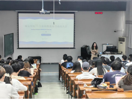 赵璐在会上结合自身工作经历与往届学生实习案例,跟同学们分享了如何快速适应实习岗位、处理师生关系、平衡实践与学习的经验。