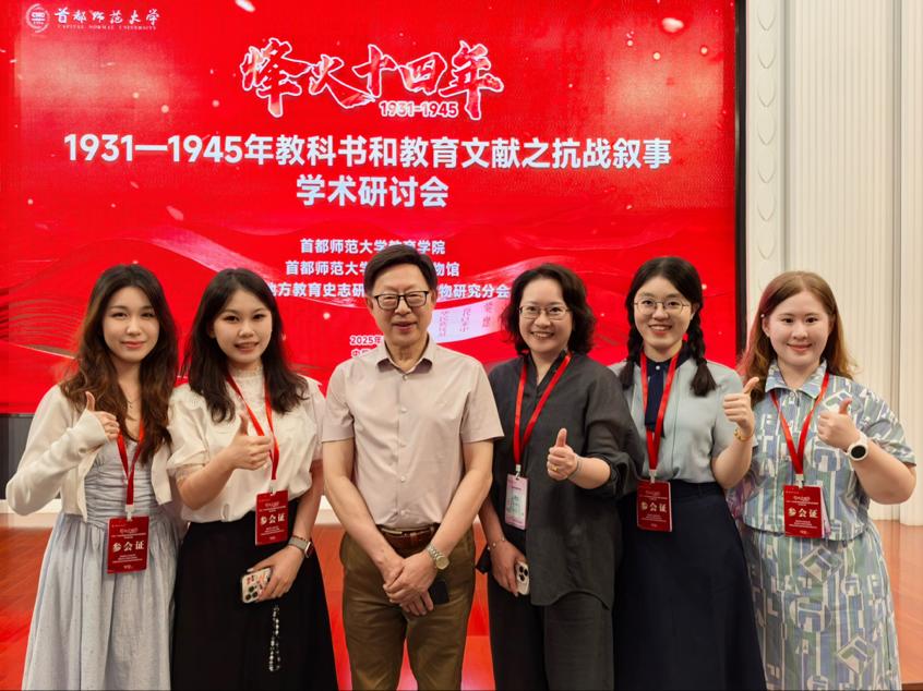 8月15日至16日,“烽火十四年——1931—1945年教科书和教育文献之抗战叙事”学术研讨会在北京召开。本次大会由首都师范大学教育学院、首都师范大学教科书博物馆和中国地方教育史志研究会教育文物研究分会联合主办,会议在抗战胜利80周年的重要历史节点举办,具有特殊而深远的意义。beat365唯一官方网站邓兰教授应邀出席,研究生武艺芳、林怡涵、温依萍全程参与此次会议。
