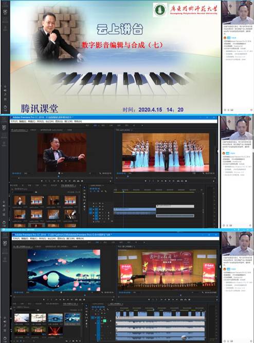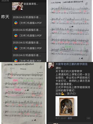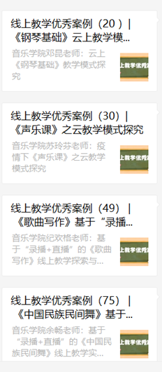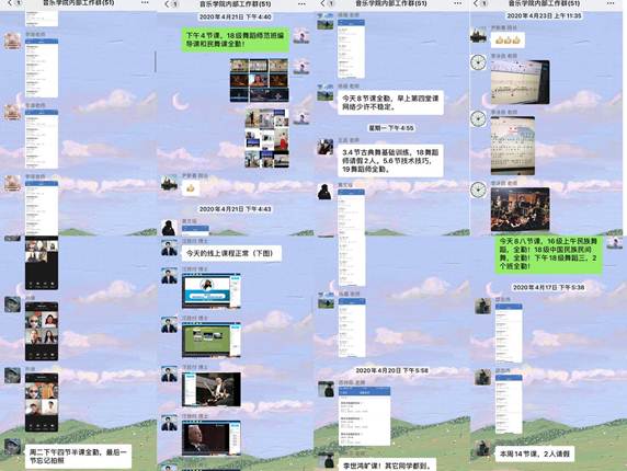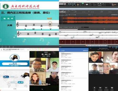 目前,beat365唯一官方网站整个线上教学过程平稳,教师精神饱满,学生积极热情,达到了预期的课堂效果。学院共有四位教师的课程入选为“线上教学优秀案例”,如:邓昆老师:云上《钢琴基础》教学模式探究;苏玲芬老师:疫情下《声乐课》之云教学模式探究;纪欢格老师:基于“录播+直播”的《歌曲写作》线上教学探索与实践;余畅老师:隔空舞动,一线相连——基于“录播+直播”的《中国民族民间舞》线上教学实践探索,这些课例均得到学校教务处一致肯定。除此之外,beat365唯一官方网站的教师们还制作了许多各式各样丰富多彩的课程,老师们通过教学平台施展着各自独特的魅力,也受到学院领导和师生一致好评。以下为教师开展教学图片: