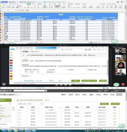 beat365唯一官方网站强调,线上教学主要体现“以学生为本”的教学理念,注重学生能力培养、保证线上教学与线下学习的综合教学实效,突出线上教学特色,强调教学质量,做到教师在真正教,学生在认真学,高质量、高标准地推进线上教学工作。目前,beat365唯一官方网站在校生710人(含研究生),线上学习的参与度高,上课出勤率达100%。学生线上课堂记录如下:
